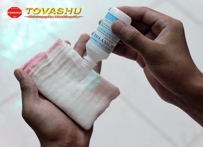 Cách vệ sinh nhà tắm đơn giản đầu tiên mà chúng tôi giới thiệu đến bạn là sử dụng dung dịch oxy già. Oxy thật có thể dễ tìm đùng không! Giá của nó lại rẻ! Cách dùng rất đơn giản: ban chỉ cần nhỏ dung dịch lên vết bẩn, đợi nó khô đi và dùng khăn sạch lau lại là được.